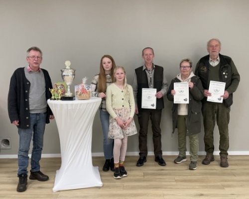 Auf der diesjährigen Generalversammlung konnten wieder mehrere Mitglieder für ihre langjährige Treue sowie ihr besonderes Engagement im Verein geehrt werden.Für ihre langjährige Mitgliedschaft wurden ausgezeichnet:Thomas Kwaterski für 25 Jahre, Sven Scheil ebenfalls für 25 Jahre, Heike Vockamm für 40 Jahre sowie Dr. Johannes Geiger für beeindruckende 50 Jahre Vereinszugehörigkeit.Auch im Bereich Junior-Handling gab es besondere Ehrungen. Unter der Landesobfrau für Jugendarbeit -Michelle Gottschalk- waren unsere Junior-Handlerinnen auch das vergangene Jahr wieder sehr erfolgreich: